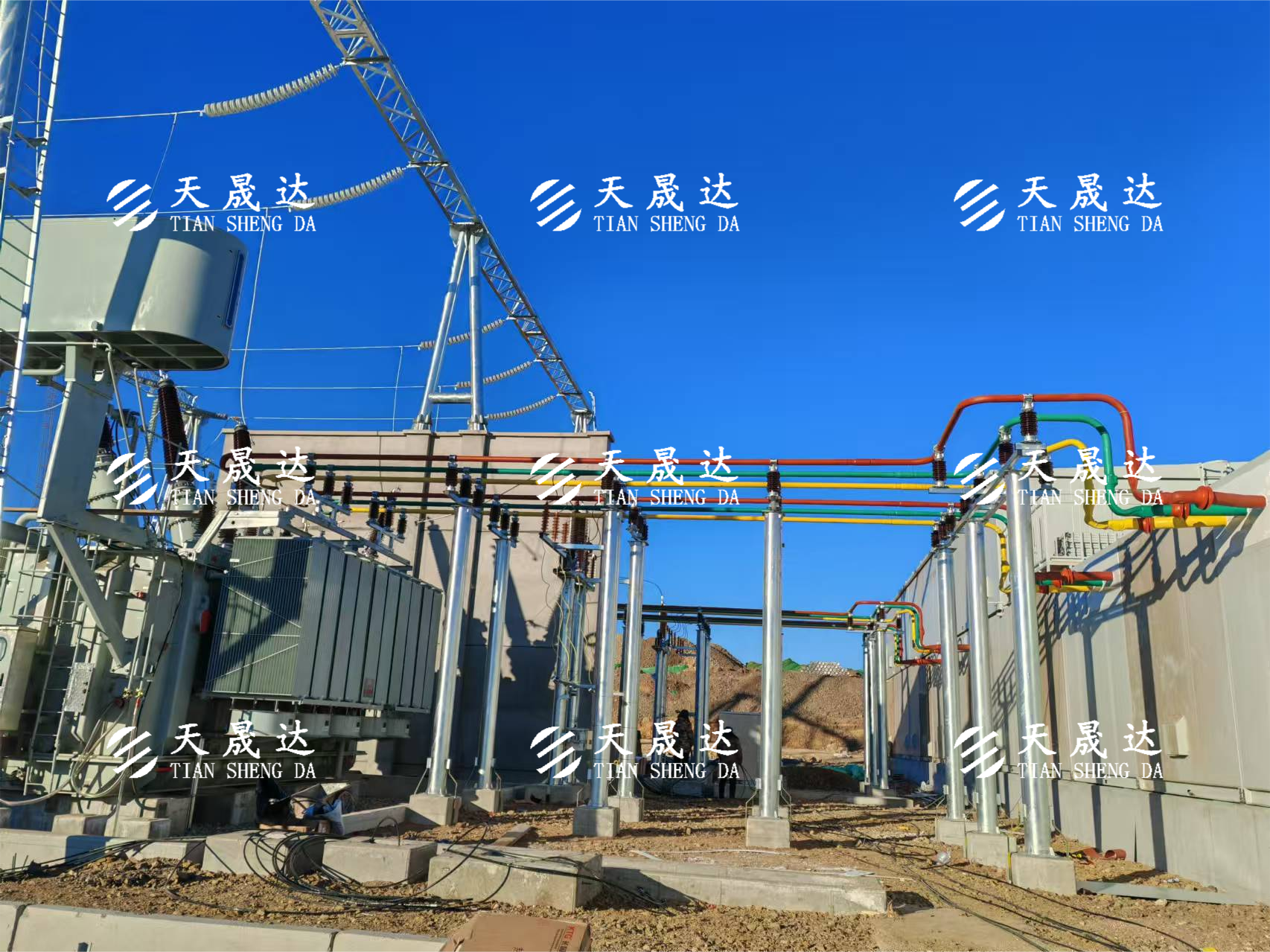 中廣核新能源內蒙古興安盟科右中旗科爾沁沙地200MW陸上風電位于內蒙古興安盟科右中旗科爾沁沙地,該項目管型母線全長400米,我公司技術人員于11月29日到達項目地開始實地勘測,測量數據傳輸回公司后我公司全體人員加班加點設計繪圖、生產加工,12月8日產品全部送達現場,安裝團隊克服現場惡劣天氣和地理環境于12月18日順利完工并通過現場驗收,該項目從測量到安裝驗收僅用了20天時間,因此受到了中廣核業主的大力表揚。